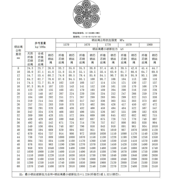 线接触钢丝绳6×55SWS+FC